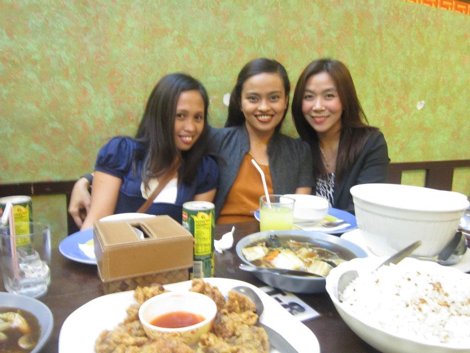 Teacher Mafy, Aykee and Cherry posing before eating dinner..