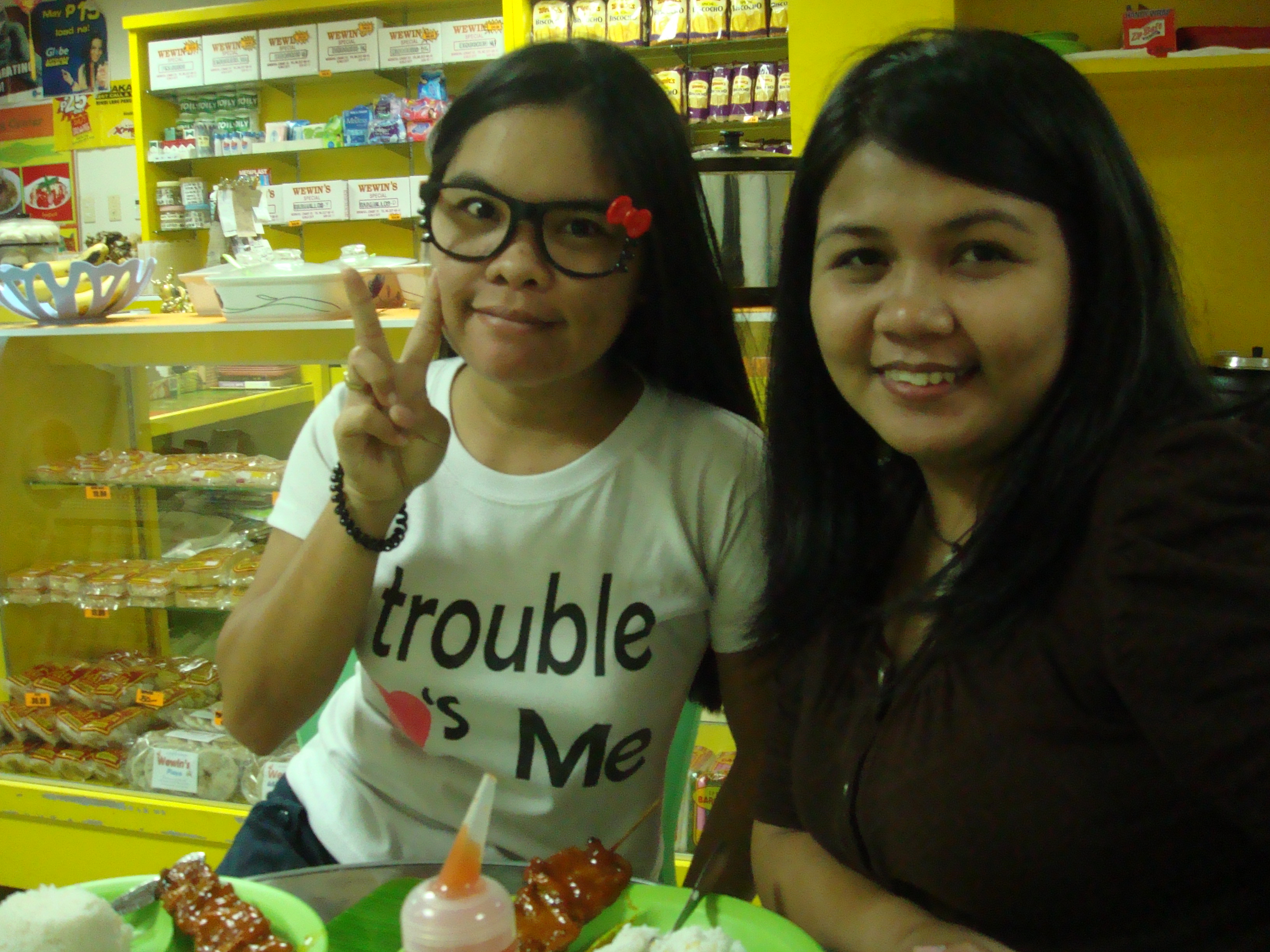Teacher Mai and Yen having snacks..